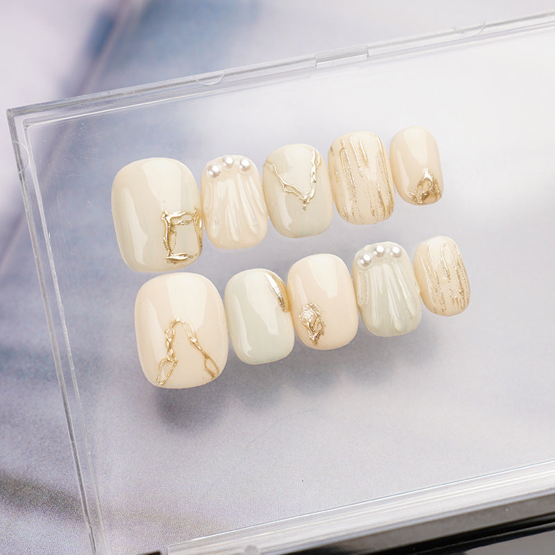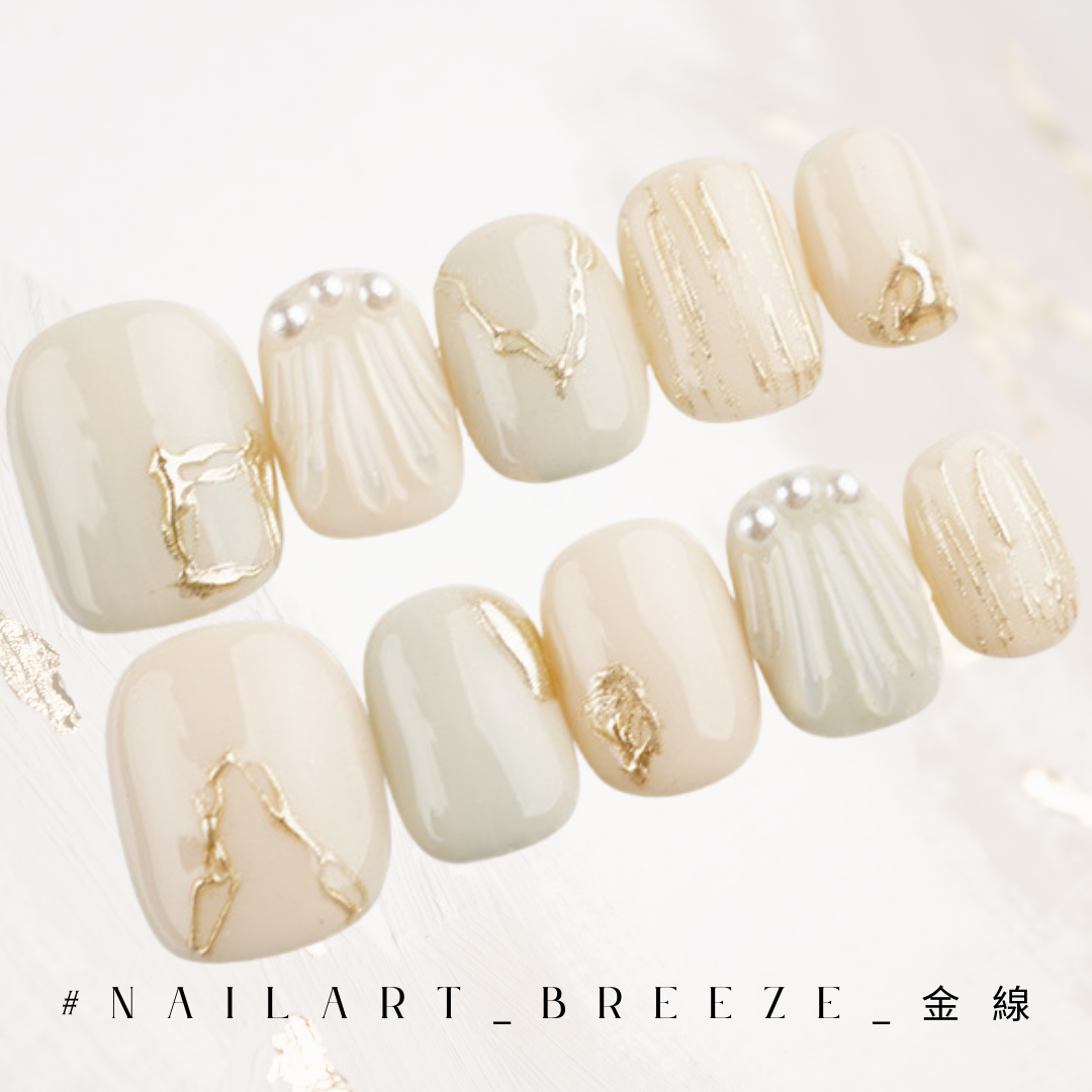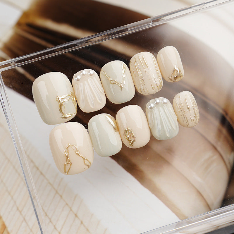 立體純米白貝殼x金線穿戴甲 | Press on nail | 香港穿戴甲